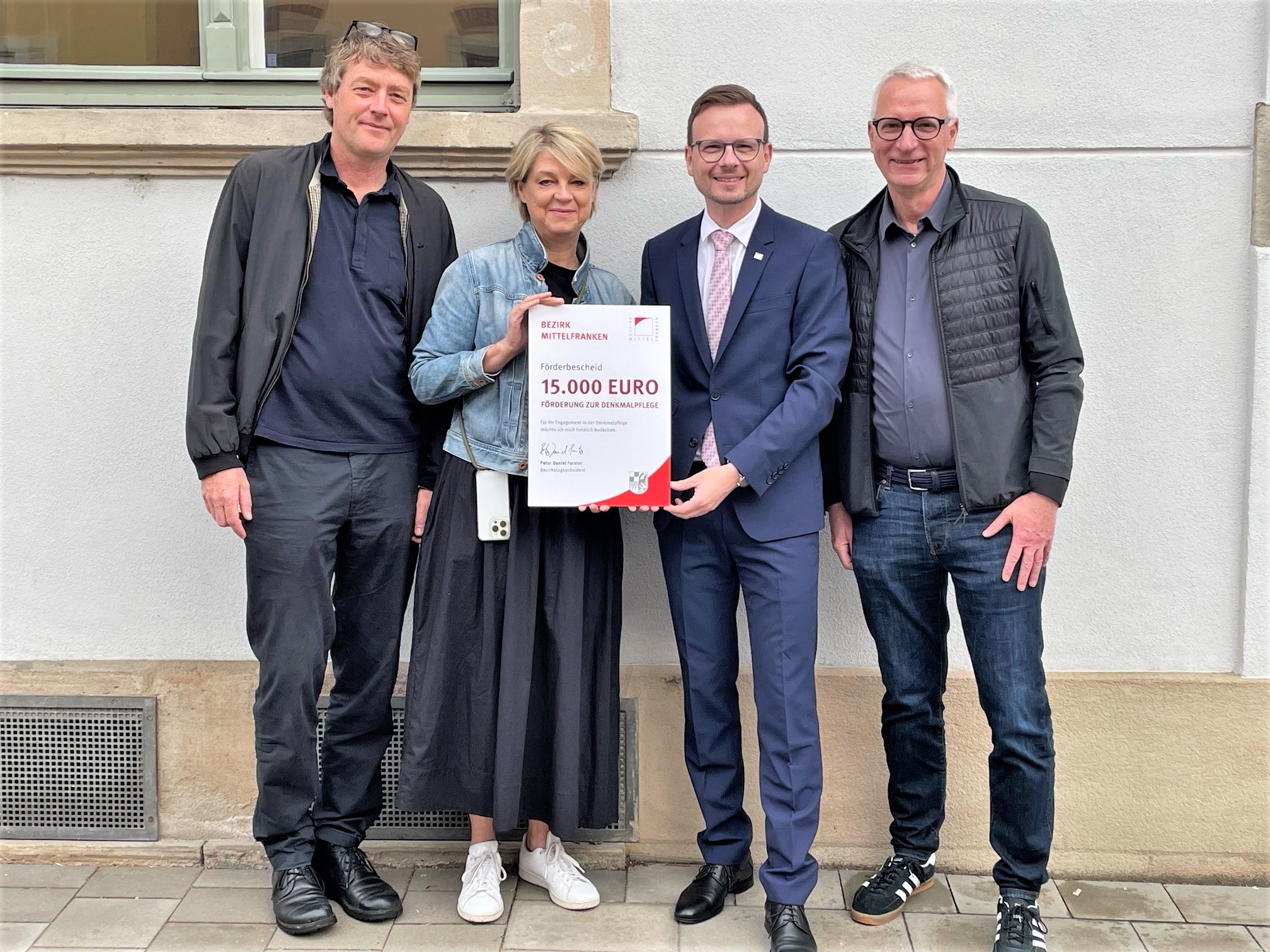 ERLANGEN – Für ihr Engagement in der Denkmalpflege überreichte Bezirkstagspräsident Peter Daniel Forster einen Förderbescheid des Bezirks Mittelfranken über 15.000 Euro an Roland und Ute Auschel. Das Ehepaar sanierte über einen Zeitraum von zwei Jahren die Doppelhaushälfte in der Loewenichstraße 24 in Erlangen.