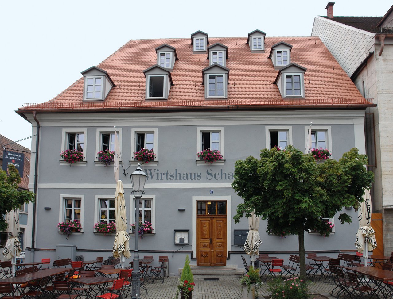 Neustadt a.d. Aisch – Für die umfangreiche Sanierung der heutigen Gaststätte „Scharfes Eck“ am Marktplatz 1 in Neustadt a.d. Aisch erhalten Nathalie Hofmann-Desbordes und Georg Hofmann vom Bezirk Mittelfranken einen Gesamtzuschuss in Höhe von 15.000 Euro. Am Dienstag, 6. Juni, wird Bezirkstagspräsident Richard Bartsch vor Ort um 14 Uhr einen symbolischen Scheck übergeben. Das Gasthaus mit ehemaliger Bierbrauerei wurde 1658 errichtet, dabei wurde vermutlich ein Teil des Kellers eines Vorgängerbaus übernommen. Umbauten wurden im 18. sowie im 19. und 20. Jahrhundert vorgenommen. In enger Abstimmung mit dem Landesamt für Denkmalpflege wurde die jüngste Sanierung des Gebäudes realisiert, seitdem ist eine aufwändige Dekorationsmalerei aus dem frühen 18. Jahrhundert im Saal des Obergeschosses wieder zu sehen. Auch wurde die schablonierte Wandgestaltung aus dem frühen 20. Jahrhundert im Nebenzimmer der heutigen Gaststätte bei der Maßnahme aufgegriffen. Im September 2013 konnte das Traditionsgasthaus wieder eröffnet werden, das mindestens seit 1725 als Brauereigaststätte bewirtschaftet wurde, ehe der Braubetrieb um 1900 eingestellt wurde. Das „Scharfe Eck“ ist heute im Besitz der Privatbrauerei Hofmann/Pahres. Bier gibt es aus dem Holzfass, das auf der Theke angezapft wird. In der Gassenschänke kann der durstige Gast ein schnelles Stehbier trinken und der eigene Bierkrug kann im „Bierseidlaseck‘“ deponiert werden.