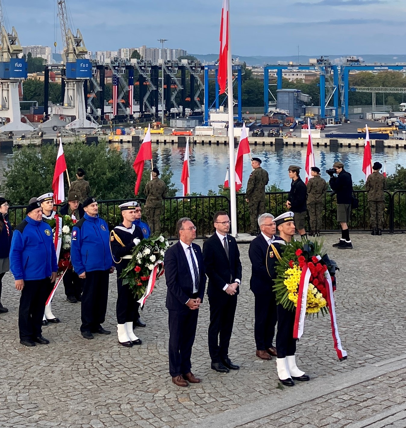 Im Mittelpunkt der Zusammenkunft an der dortigen Gedenkstätte standen Ansprachen von Polens Ministerpräsident Donald Tusk, Verteidigungsminister Władysław Kosiniak-Kamysz und der Stadtpräsidentin von Danzig, Aleksandra Dulkiewicz. Das Entzünden der Friedensfackel, ein Gedenkappell, das Verlesen der Westerplatte-Botschaft durch Pfadfinder und ein interreligiöses Gebet bildeten den würdigen Rahmen der Veranstaltung, bei der am Ende Bezirkstagspräsident Forster mit Herbert Lindörfer und Hans Henninger einen Blumenkranz des Bezirks feierlich niederlegte. Die Bundesrepublik Deutschland vertraten Generalkonsulin Cornelia Pieper und der Koordinator der Bundesregierung für die deutsch-polnische Zusammenarbeit, Dietmar Nietan.