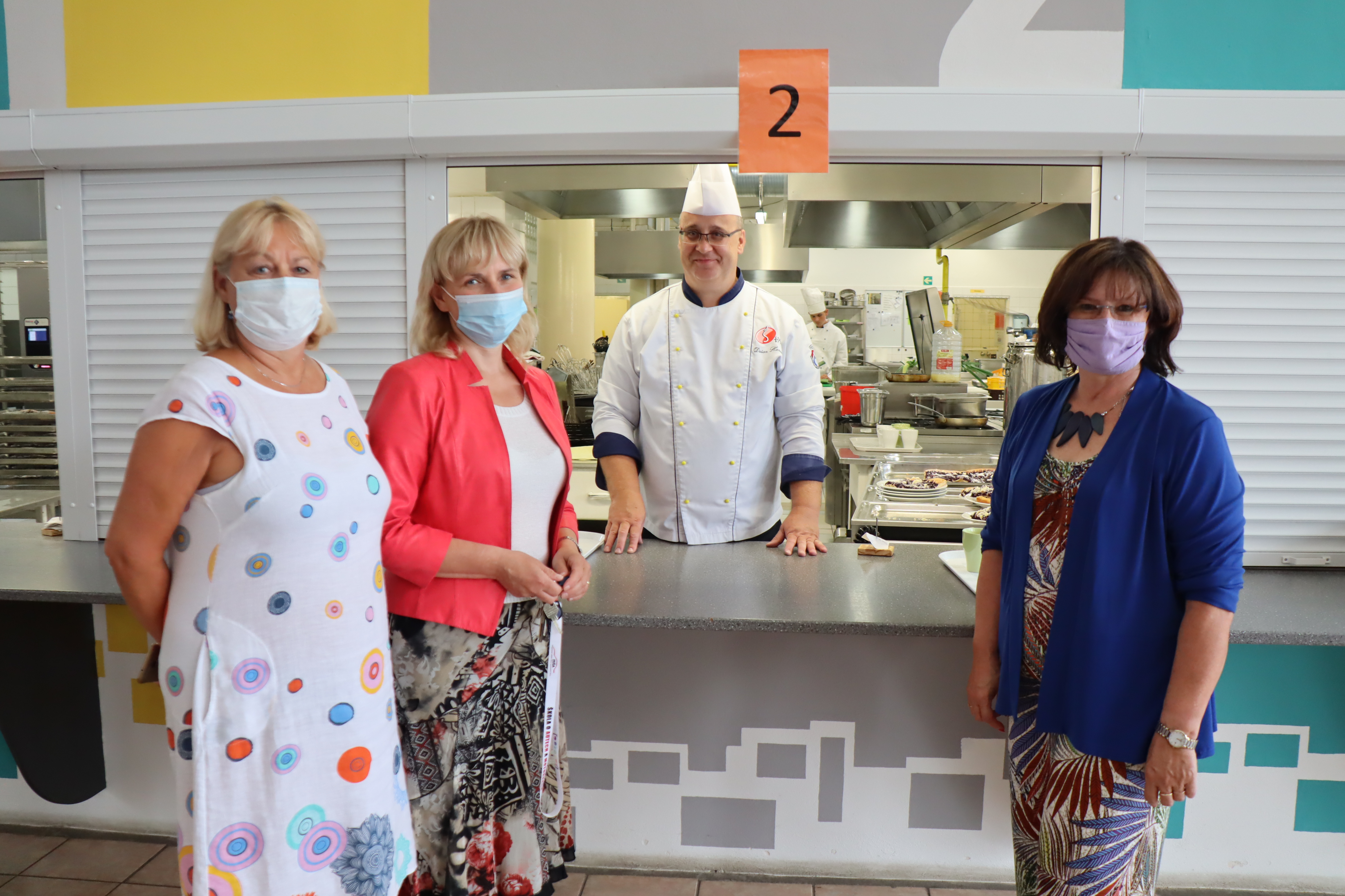 Unser Bild zeigt Christa Naaß (rechts), Stellvertreterin des Bezirkstagspräsidenten, in der Charbulova-Berufsschule mit Schulleiterin Jana Marková (erste von links) und Kateřina Kalinová (zweite von links).